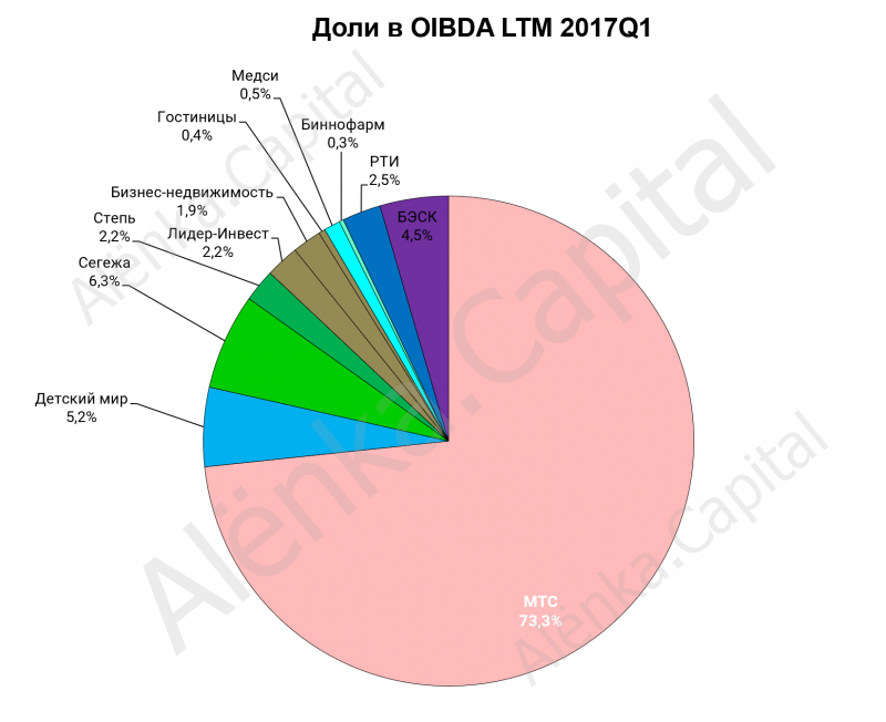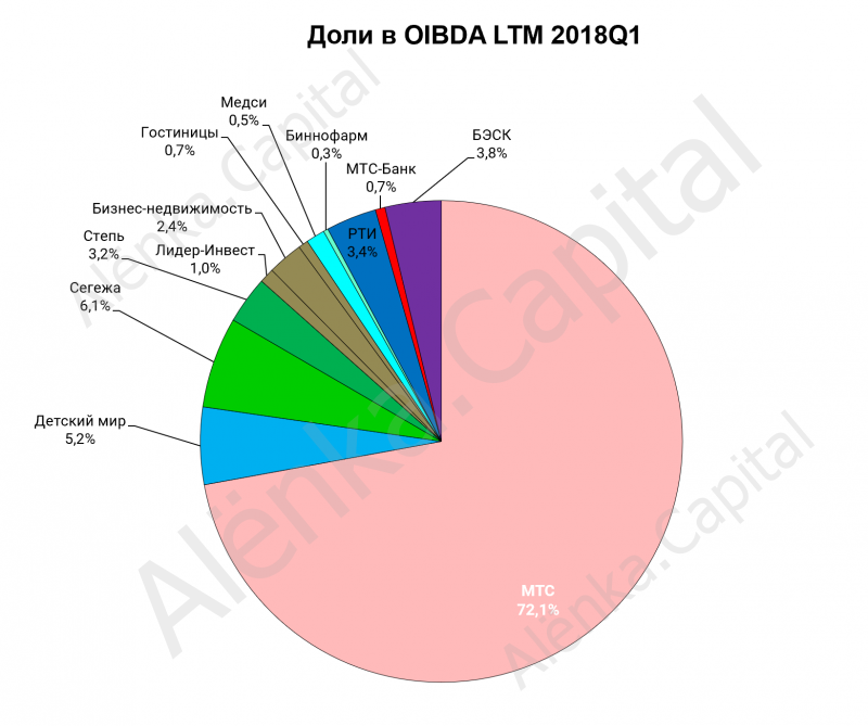 Таким образом вес активов “не МТС” в реальной OIBDA был бы 25%, а МТС соответственно 75%.