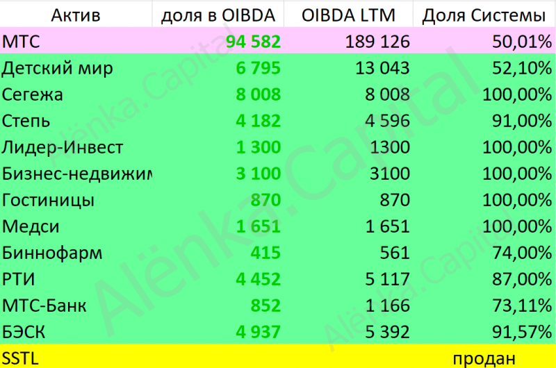 Система же не получает 100% дивидендов, зачем же нам консолидировать OIBDA, трезво понимая, что Система это инвестиционный холдинг.